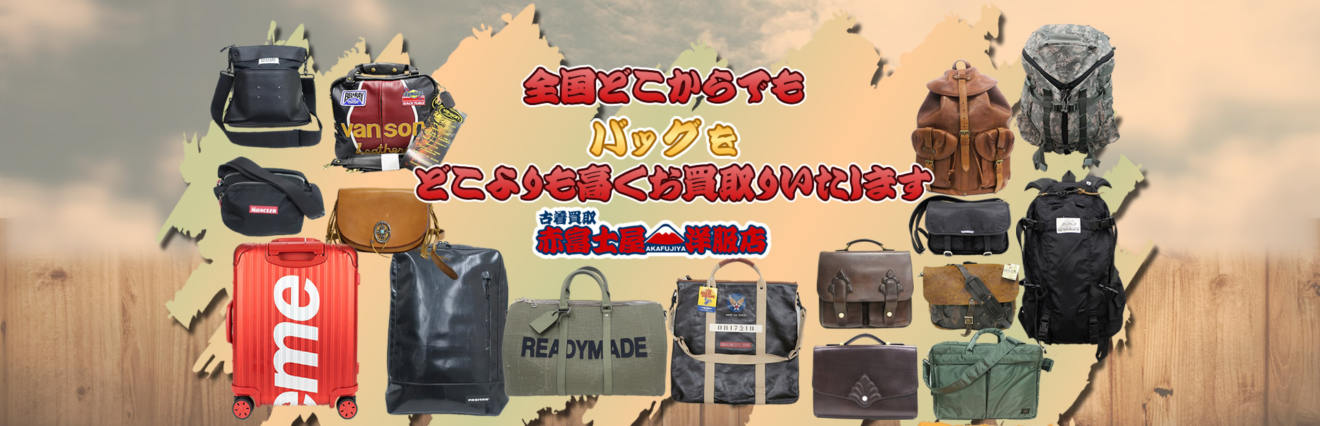 買取アイテム洋服(古着)・靴・バッグ・アクセサリーをどこよりも高額にて買取いたします。