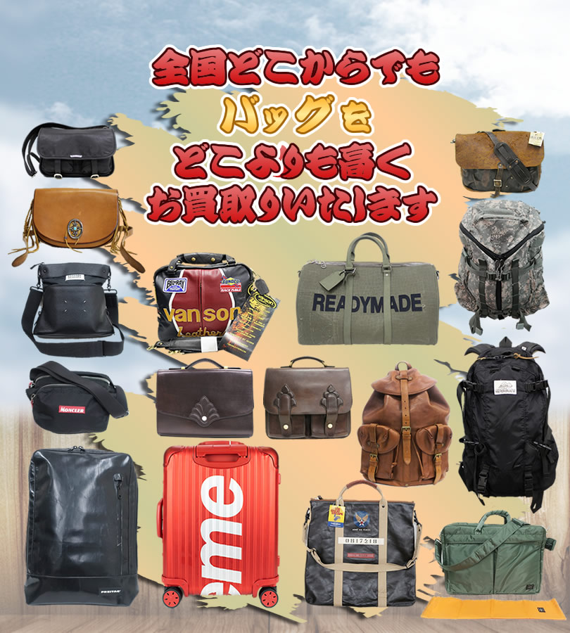 「リアルマッコイズ・バズリクソンズ」等のフライトジャケットや、「パタゴニア・ノースフェイス・アークテリクス」等のアウトドアブランド、「リーバイス・フリーホイーラーズ・東洋エンタープライズ」等のアメカジ、「テンダーロイン・visvim・WTAPS・ワコマリア」等の古着、「Supremeやエイプ」等のストリートブランド、「ポーター・グレゴリー・ミステリーランチ」等のバッグ、「ナイキ・アディダス・ニューバランス・コンバース」等のスニーカー、「レッドウイング・ダナー」等のブーツ、「オールデン・ジョンロブ」等のシューズ、「クロムハーツ・ガボール」等のアクセサリー等、メンズファッションを幅広く宅配買取をしております。その他のブランドもどこよりも高額にてお買取をさせていただいております。メールでの事前査定のご依頼は24時間受け付けておりますので、是非お気軽に無料査定をお試しください!