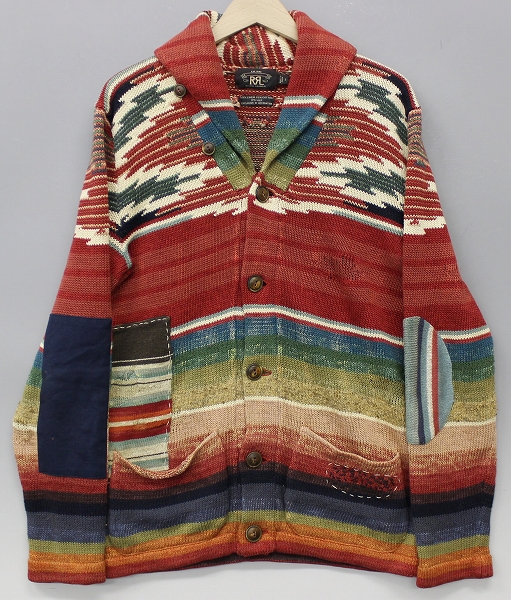RRL(ダブルアールエル) 10AW ネイティブ柄マルチボーダーカーディガン