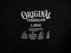 正面と両袖、背面の上部に「Original Tenderloin」のペイントロゴのプリントが施されております。