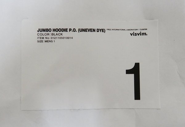 「visvim 21ss JUMBO HOODIE P.O. (UNEVEN DYE) BLACK 0121105010014」をお売りいただきました。